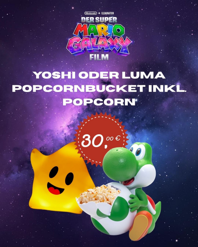 So viele von euch wollten den Yoshi Popcorn Bucket gerne haben, doch leider konnten wir das zum Start von Super Mario Galaxy nicht möglich machen. Leider ist es für kleine Kinos kaum möglich, die tollen Buckets aufgrund der großen Abnahmemengen produzieren zu lassen - daher gab es das bisher immer nur bei den großen Ketten. Bisher... Denn das ändert sich jetzt!